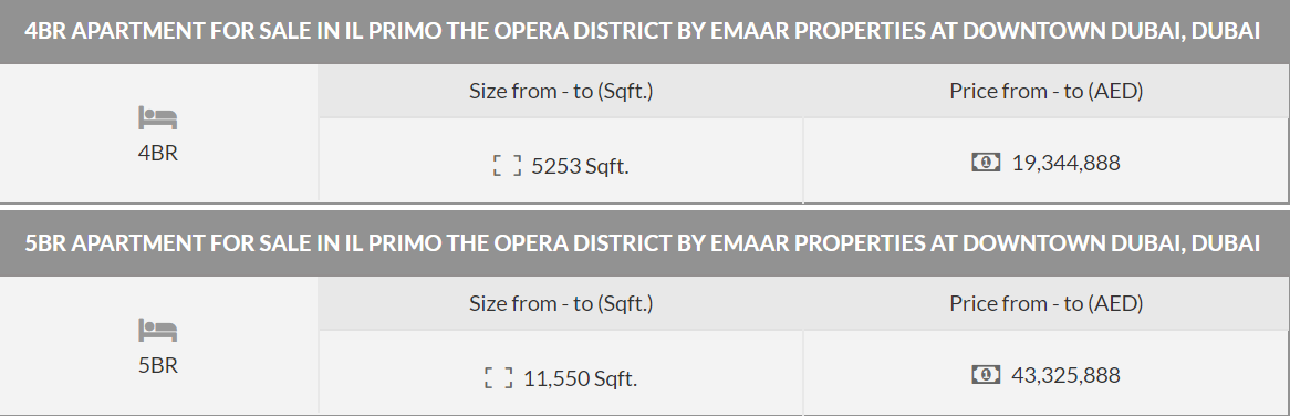 IL Primo The Opera District by Emaar Properties in Downtown Dubai is yet again a brilliant project by the much applauded and appreciated Emaar Properties in the region. A beautifully crafted and finely infrastructured set of gated and secured homes, the houses will all entail the finest set of premium amenities for the residents to relish. The apartments in IL Primo The Opera District are immaculately designed 4BR, 5BR, & 6BR apartments and duplexes at impeccable payment plans and rates. So set your eyes to it and be ready to invest your hard earned money in such a fruitful investment.