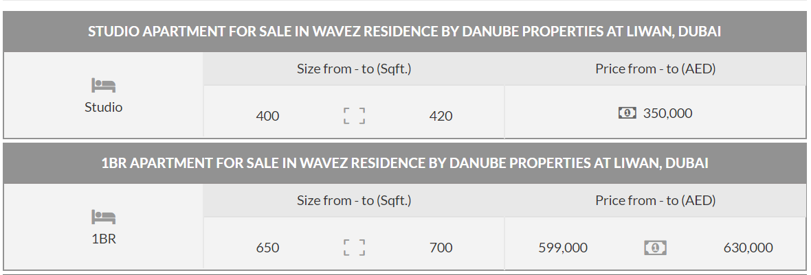 Wavez Residence by Danube is a coming soon luxurious tower in Liwan, Dubailand. The residences are perfectly nestled at the center of Dubai’s shopping and entertainment destinations and are also connected to major Dubai highways and public shipping centers. Aside from providing studio, and 1-bedroom apartments, Wavez Residence also offers retail shops, restaurants and lounge areas. Gain access to a wide range of amenities including a fully-equipped gym, steam, and sauna, outdoor swimming pool, barbeque patio exclusively for its residents.