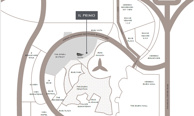 When choosing a dream house, one of the most important consideration for anybody is the convenience of location that place enjoys. Under this scenario, IL Primo The Opera District enjoy a very feasible and nuclear location. They are located in the luscious area of Downtown Dubai which is  unique master development located in Dubai developed by the unmatched Emaar Properties. Downtown Dubai, like many other enigmatic Downtowns in the major cities of the world, is in most certain sense the heart and soul of Dubai’s metropolis and thriving urban life. Previously known as Downtown Burj Dubai, it is a mixed-use compound developmental project meant to accommodate residential, commercial, real estate as well as retail developments. Serving for more than a decade as the hub of tourism, Downtown Dubai features a plethora of world-class luxury and lavish hotel chains like world’s first Armani Hotel and Emaar’s flagship address, Vida and Manzil hotels. In addition to this, Dubai Downtown is also home to one of tallest wonder of the world i.e. Burj Khalifa where millions of people gather each year for the iconic firework and laser show at the New Years Eve from different parts of the world. Dubai Fountain, the Address Downtown, Dubai Mall, and Burj Park Island are also located in the apex along with Burj Khalifa. More off plan property projects are seen to be launched in Downtown Dubai in the coming years.