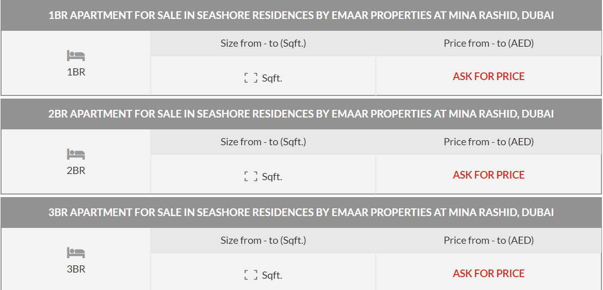 Seashore Residences, the newest projects of Emaar, is set to make its arrival soon. It offers 1 to 3 bedroom apartments being located at the most sought-after area. The area gives the residents pleasure of living a Riviera style in the most luxurious and prestigious apartments. These apartments are artfully adorned with pristine views of shimmering water and the palm trees. Seashore Residences can be found within Mina Rashid with fantastic views of the community. This property offers luxurious apartments and classified as prime and exclusive residences.