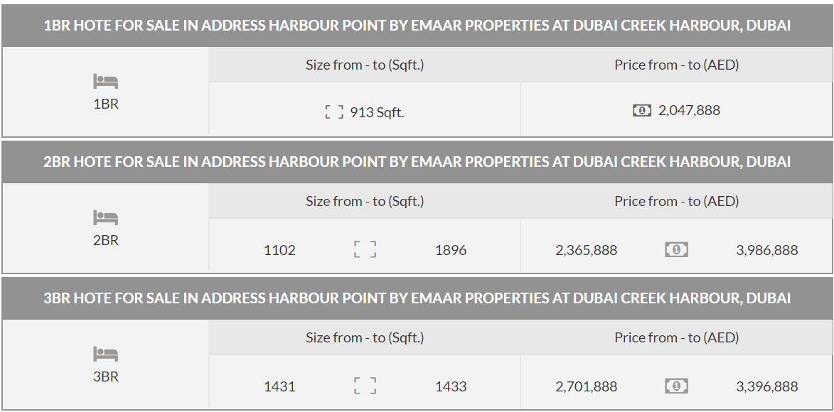 Address Harbour Point is a residential development by the much applauded Emaar Properties offering 1BR, 2BR, & 3BR apartments with posh amenities in the serene and scenic area of Dubai Creek Harbour.