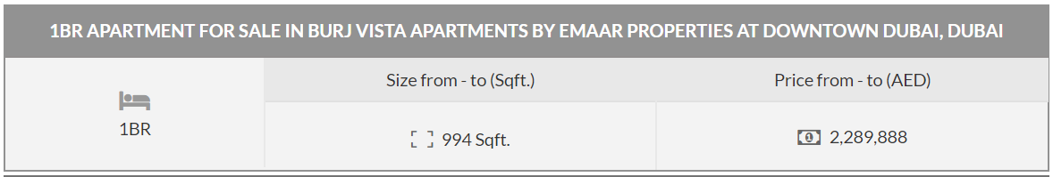 Burj Vista Apartments is a coming of age residential development by Emaar Properties in the vibrant neighborhood of Downtown Dubai comprising of 1, 2 & 3BR apartments with posh state-of-the-art facilities.