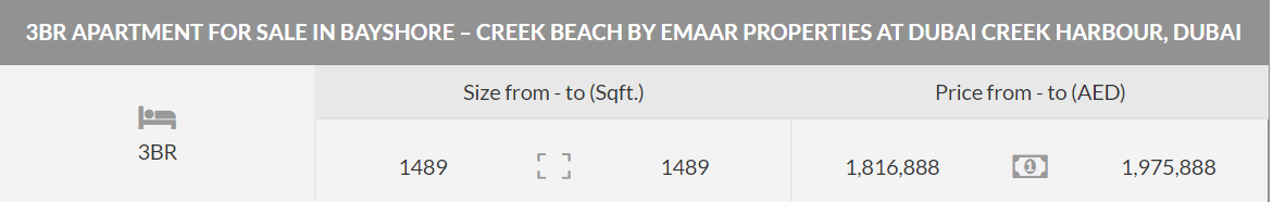 Built amidst the waters of Dubai Creek, Emaar’s Bayshore at Creek Beach is a residential building with 1BR, 2 BR,& 3 BR apartments. Being a few minutes away from Creek Marina and Dubai Creek, Bayshore provides residents with lifestyle, luxury and comfort like never before.