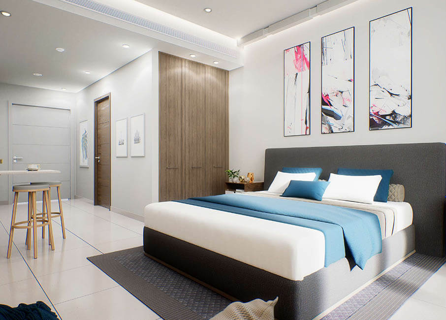 Studio apartments feature high quality furnishings and finishes with floor-to-ceiling windows to maximize natural light and spacious balconies with amazing city views. These apartments offer the perfect sanctuary for personal relaxation.